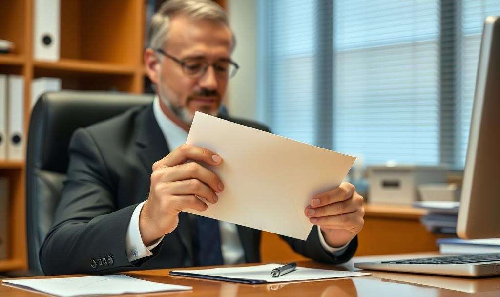 I took the envelope, had them sign out, and moved on to the next candidate. On my way to the boardroom, I dropped the envelope on my desk. When I returned to my office after a day of back-to-back interviews, the envelope was staring at me. Curiosity got the better of me, so I opened it before checking my emails or voicemails.